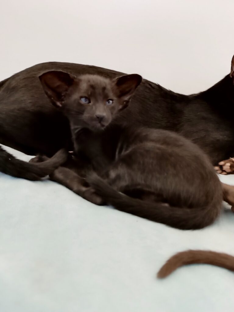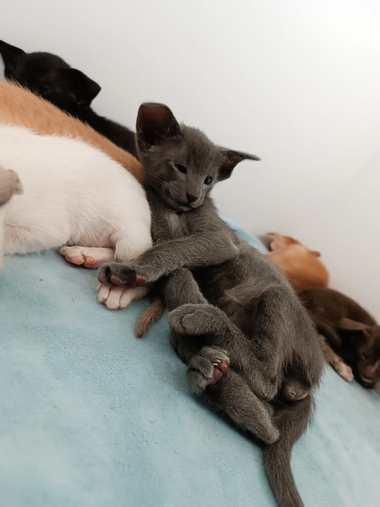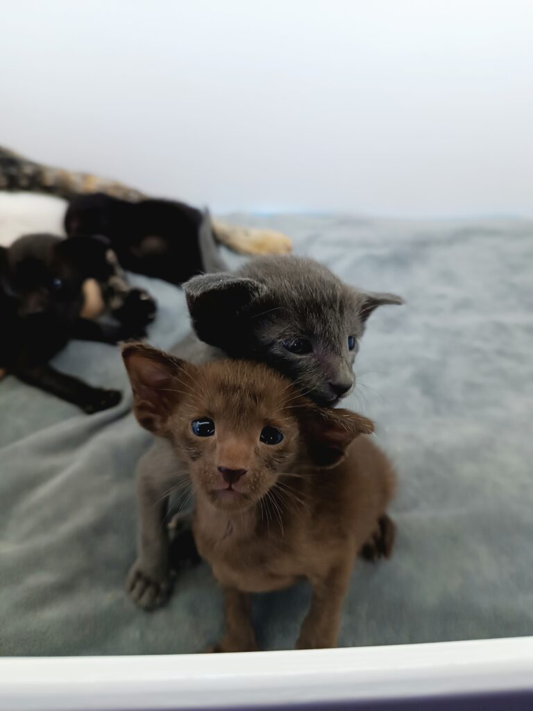 Mamy cztery maleństwa orientalne – trzy kocurki i jedną koteczkę.