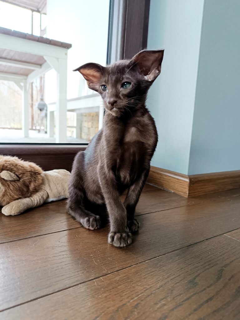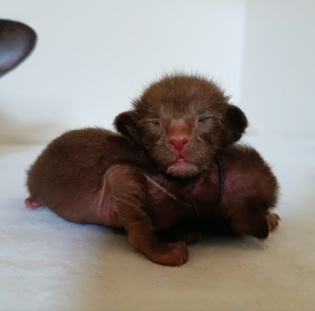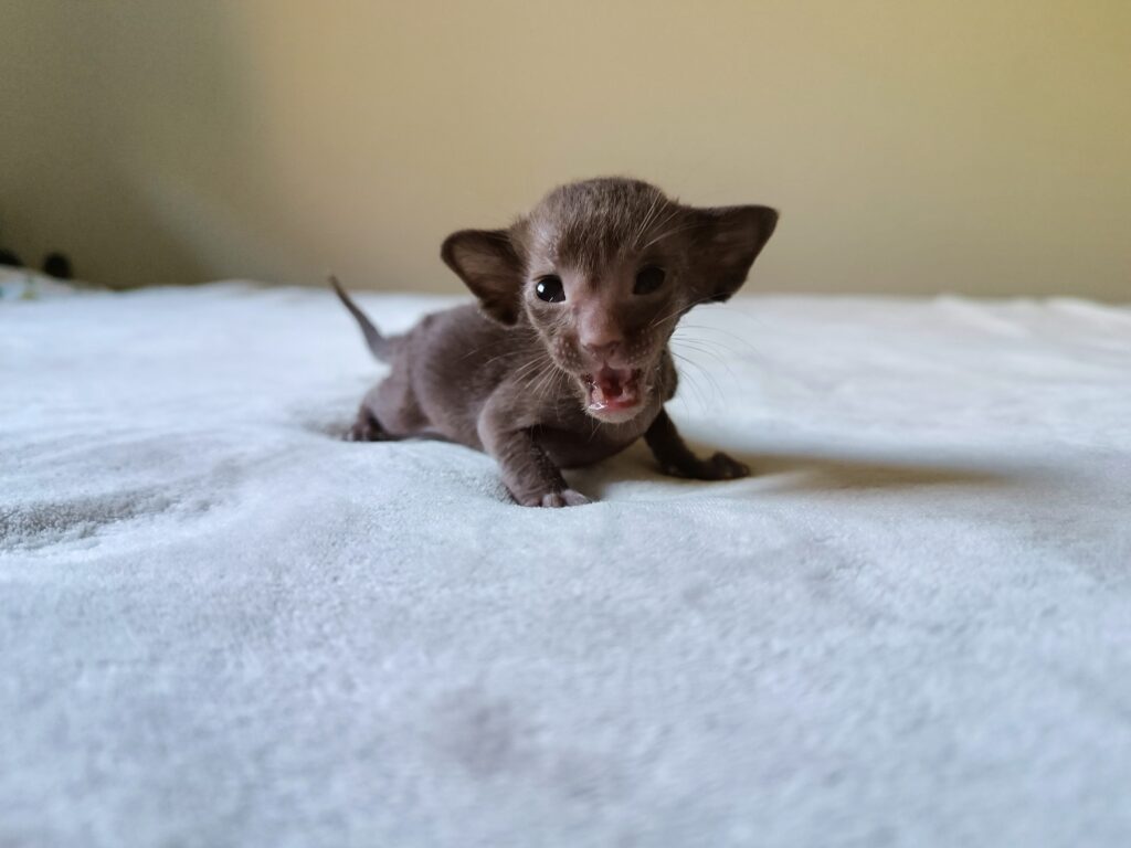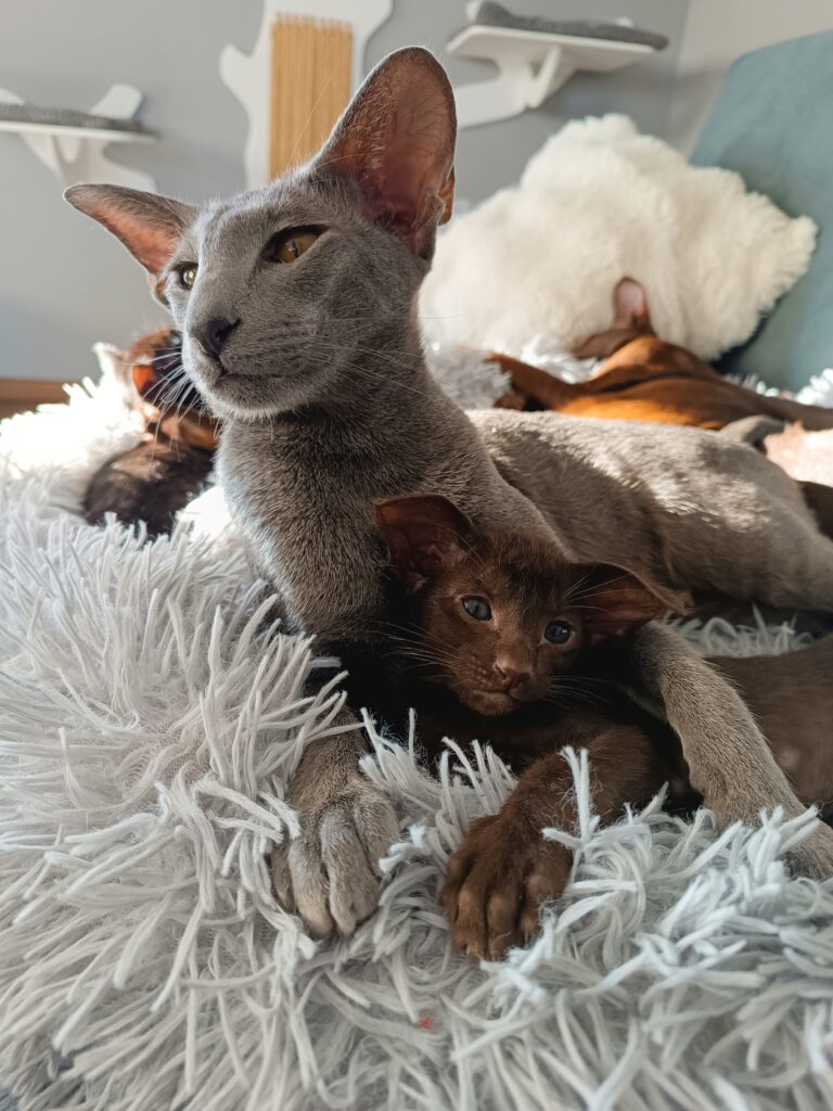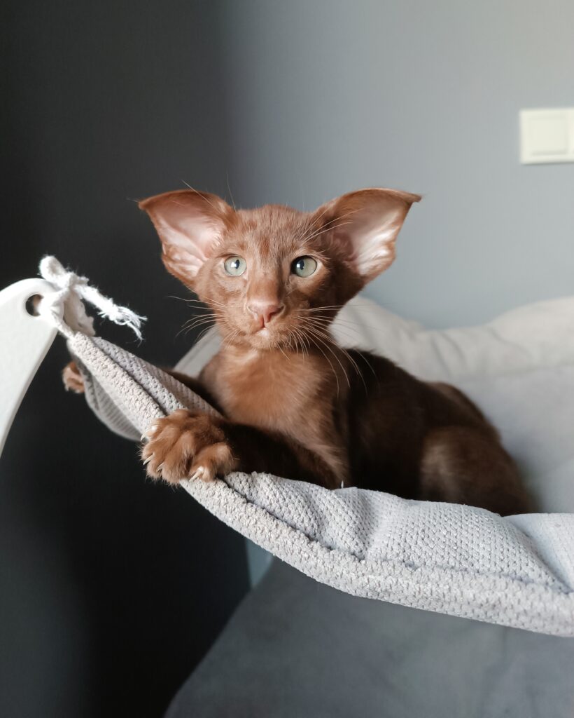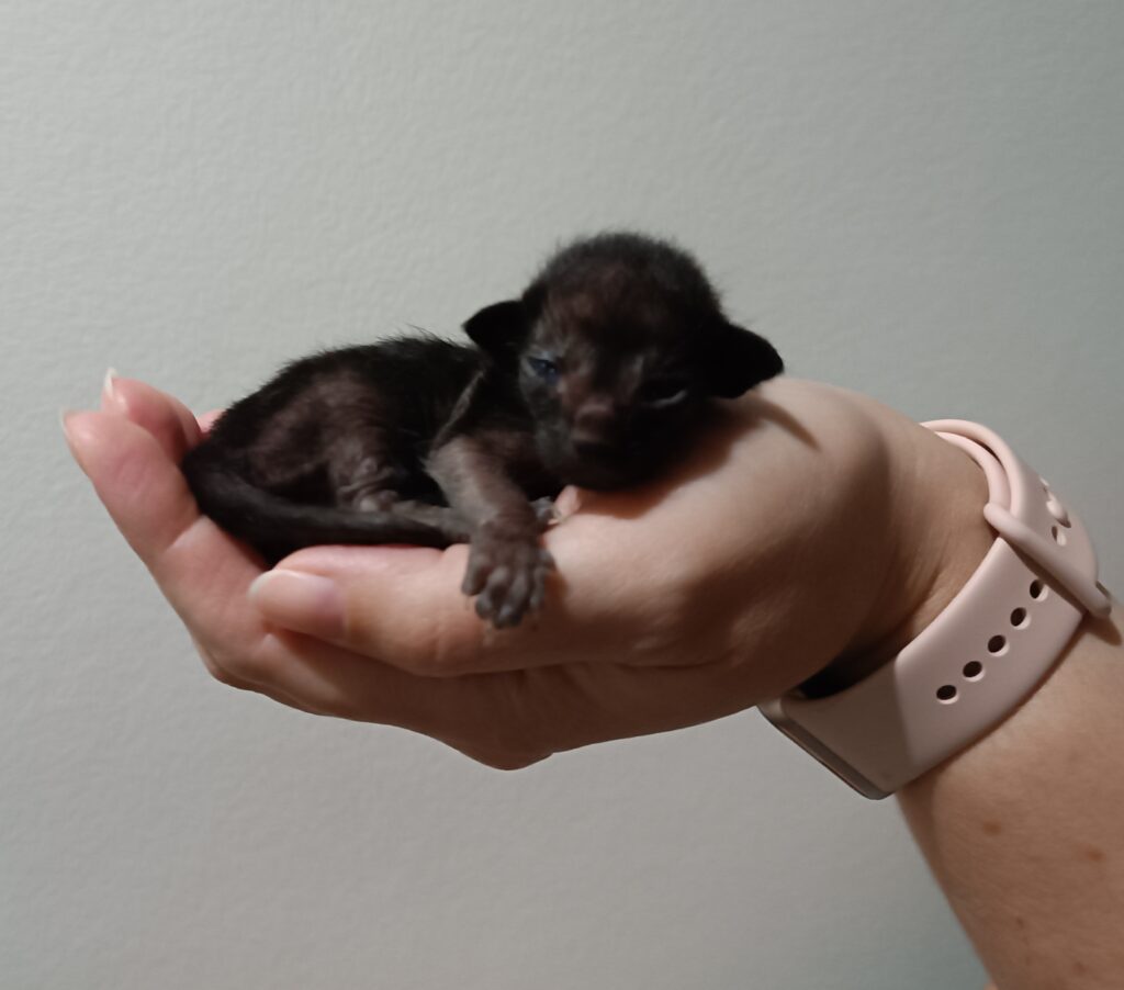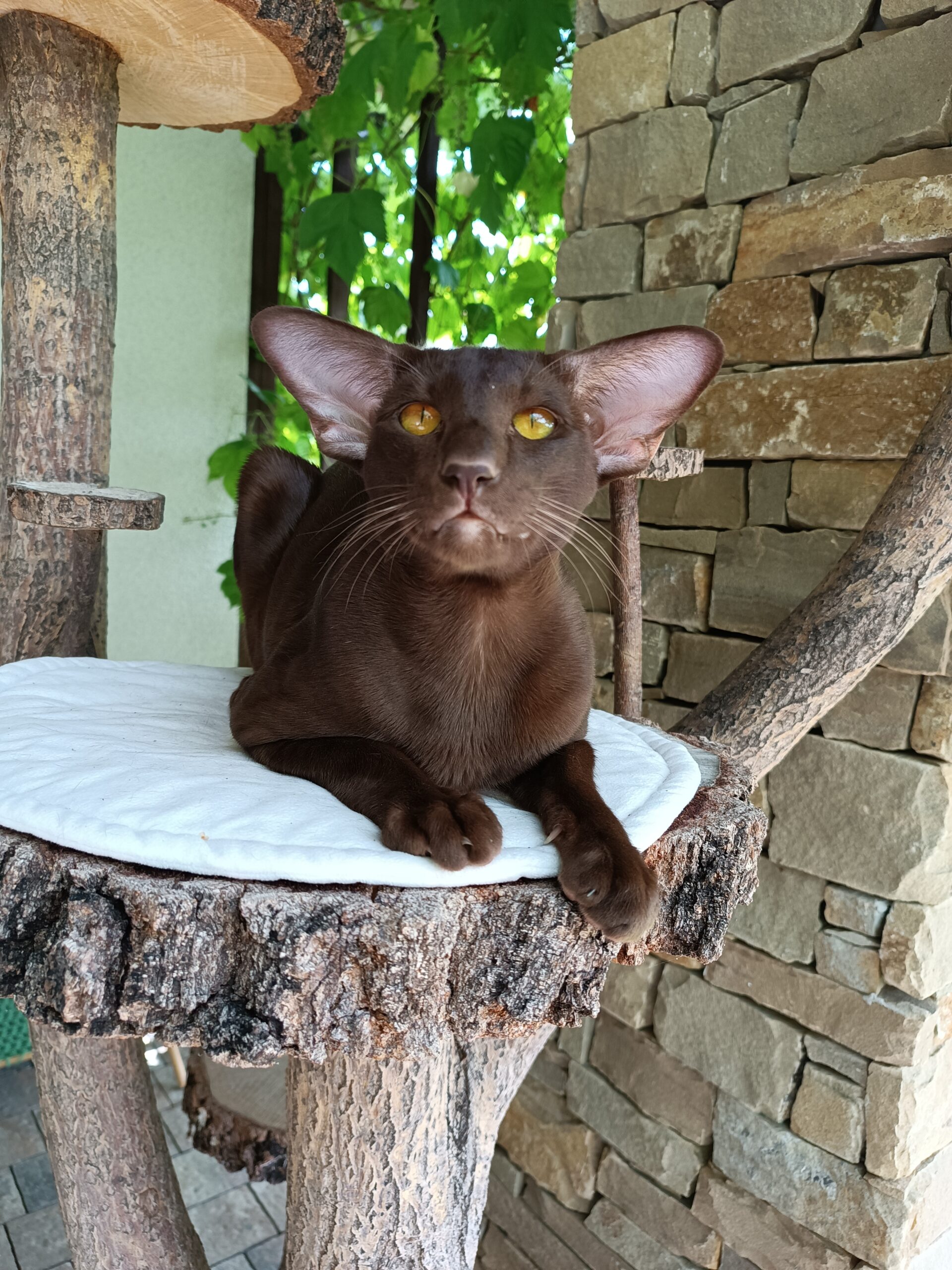 Irma – czekoladowa kotka orientalna (czerwony znacznik) – największy rozbójnik i miłośnik głaskania wśród rodzeństwa. Po domowemu Buła ze względu na swoją tuszę w okresie noworodkowym 😉 Rezerwacja