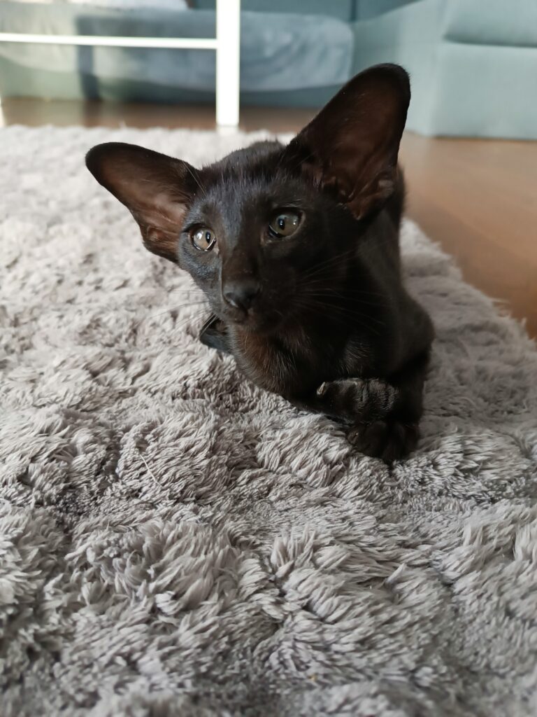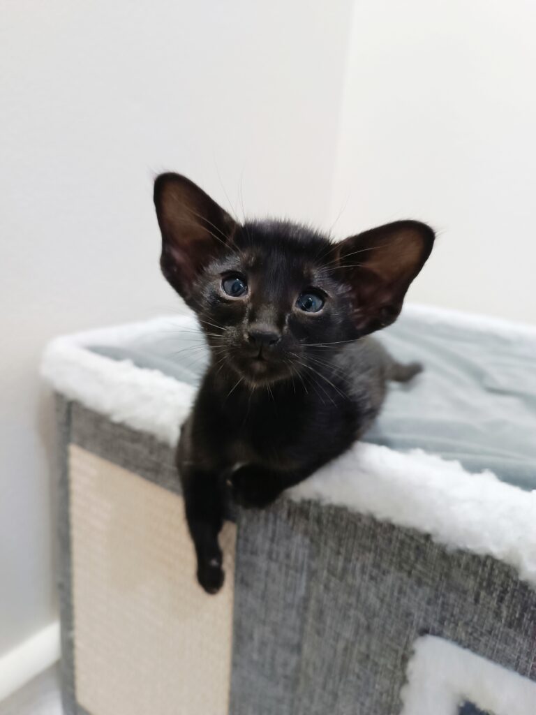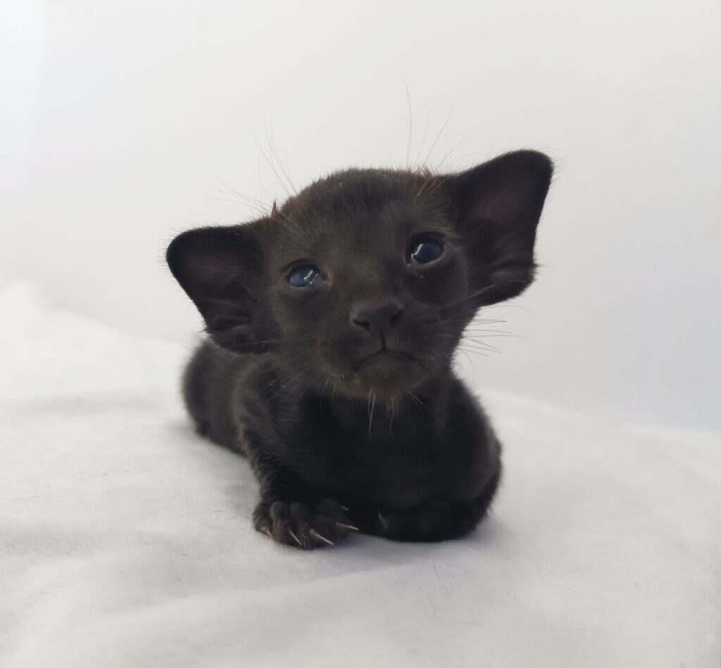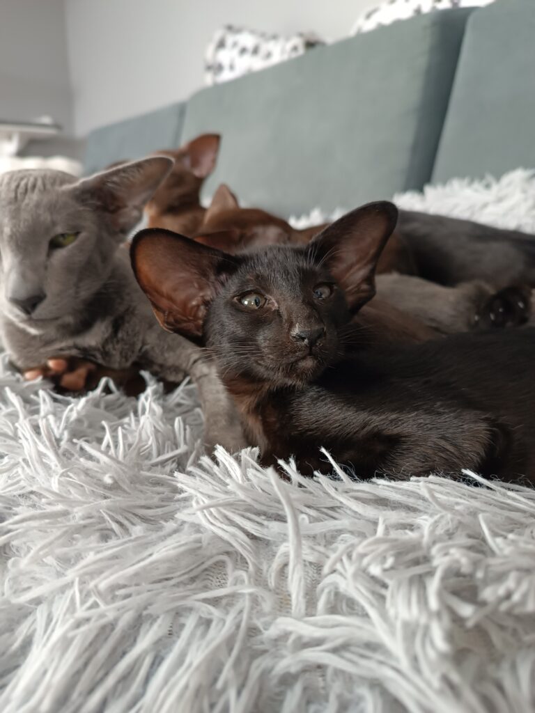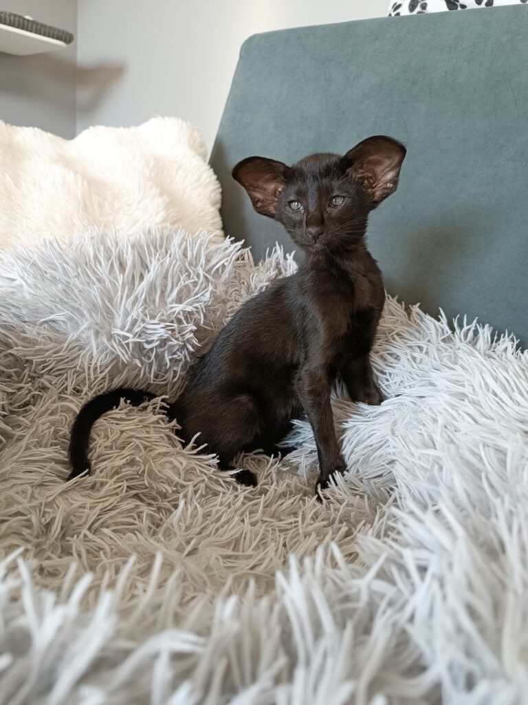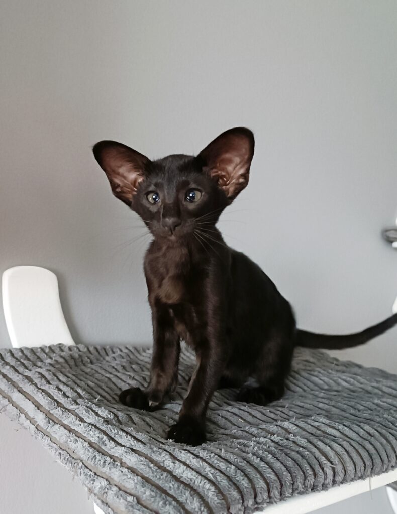 India – czarna kotka orientalna – delikatna panienka o wyjątkowym głosie, wyróżniająca się na tle rodzeństwa swym umaszczeniem. Obecnie niedostępna